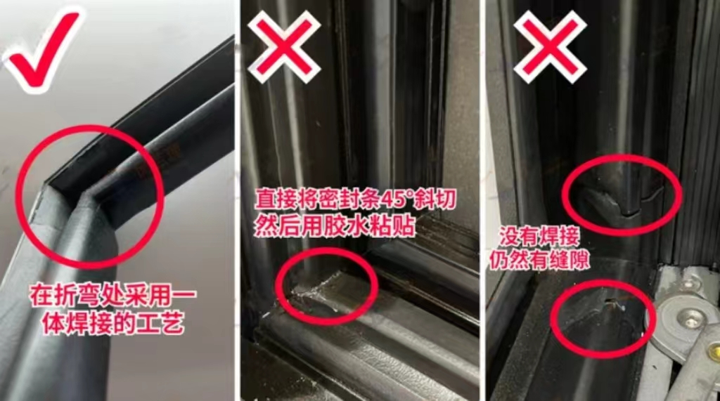 很多商家在密封膠條的轉(zhuǎn)彎處,直接切斷,簡單的用膠水粘合或者不做任何處理,這樣整窗的密封性都會(huì)受到很大的影響。