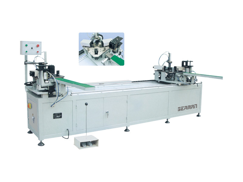 鋁門窗雙頭組角機是高檔鋁門窗專用設(shè)備,可一次完成兩個角的角碼式?jīng)_鉚聯(lián)接。